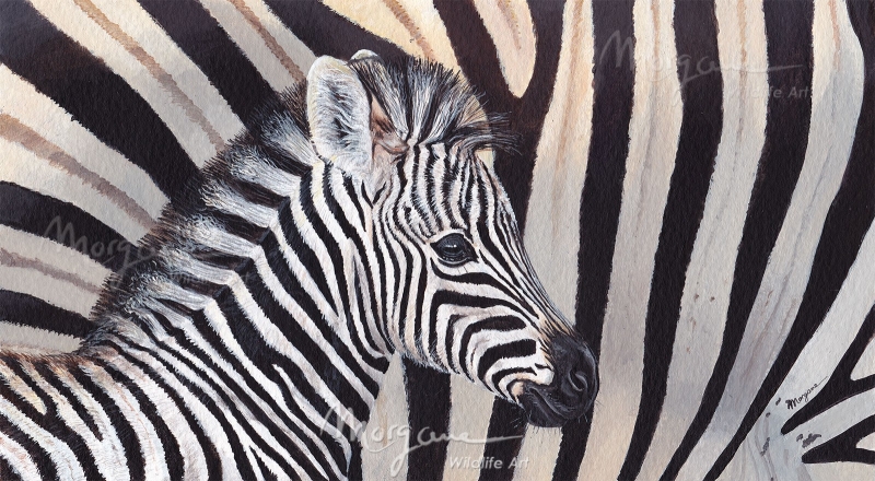 Stripes, lots of stripes for this cute zebra foal standing close to mom.