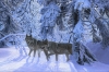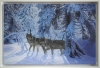 Two timber wolves walking in a snow covered forest. The light is soft, low, stretching the muted pink, blue and violet shadows across the glittering white grounds. When lit correctly, it even enhances the feeling that the light is coming through the canvas giving it a wonderful and surprising 3D feel (the picture here really doesn't do it justice!).