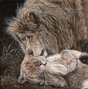 White lions (variation of Panthera Leo Krugeri) are not albinos but have a genetic mutation called leucism which gives them a creamy color coat with blue eyes while retaining normal pigmentation of the skin. It is a naturally occuring condition found mostly in eastern South Africa around the Kruger National Park although most of the white lions today are born in captivity.