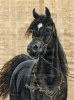 A proud black Egyptian Arabian stallion in native costume.
