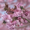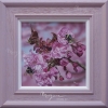 These bumblebees are buzzy – sorry busy – looking for fresh pollen in the flowers of a blossoming cherry tree. You probably can’t see it well in the picture but there is a touch of gold on their wings and this gives this tiny painting a subtle gleaming feel!