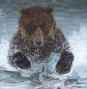 Chaque été, des centaines d'ours bruns se rassemblent sur les bords des lacs et rivières d'Alaska pour attendre la migration des saumons (de retour de l'océan pour la période de reproduction). C'est l'occasion de constituer la réserve de graisse dont ils auront besoin pour leur prochaine hibernation qui durera entre 5 et 7 mois. Les ours ont tous leur technique favorite, les plus performants arrivent à attraper et manger plus de 30 saumons par jour !Celui-ci semble favoriser le "dash & grab", probablement une des techniques les plus spectaculaires quand 350 kg de muscles passent à l'action d'un coup pour coincer un poisson dans de grandes éclaboussures d'eau!