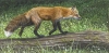 A fox patrolling its territory and using an old trunk as an overpass in the forest.