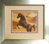 A fiery Arabian horse rearing up in the desert. Gilded with metallic golf leaves.