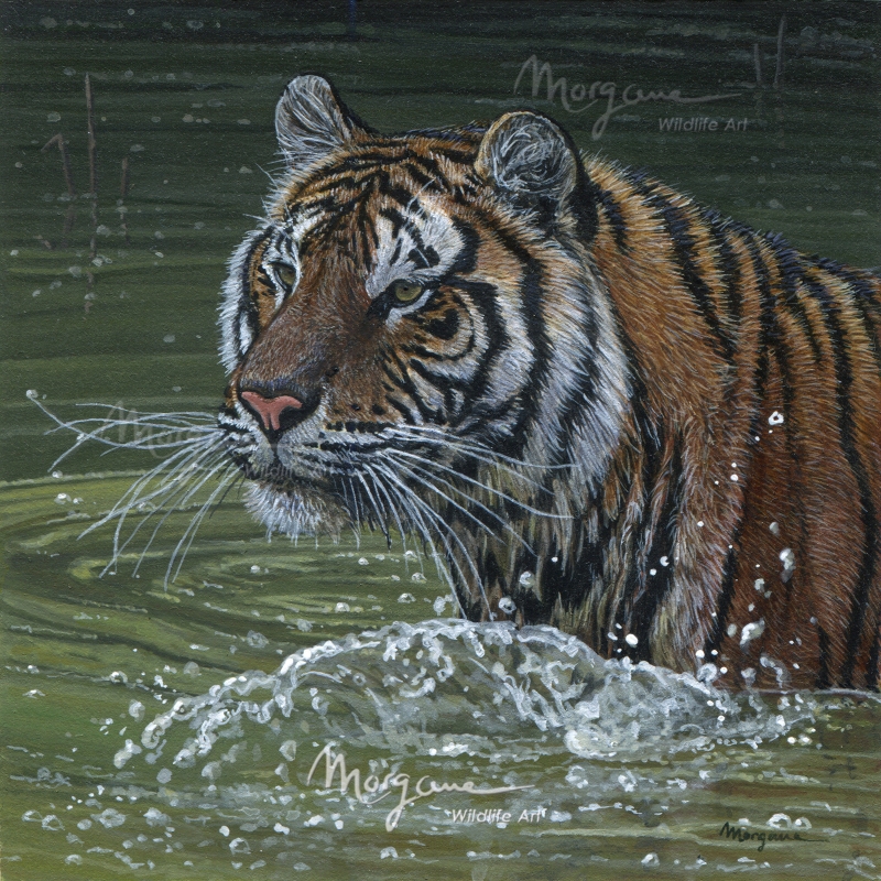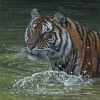 A Siberian tiger splashing in the water.