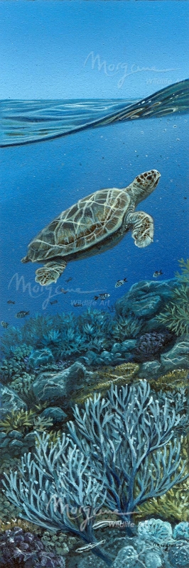 A turtle swimming in the clear waters of reef paradise.