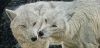Two arctic wolves kissing.