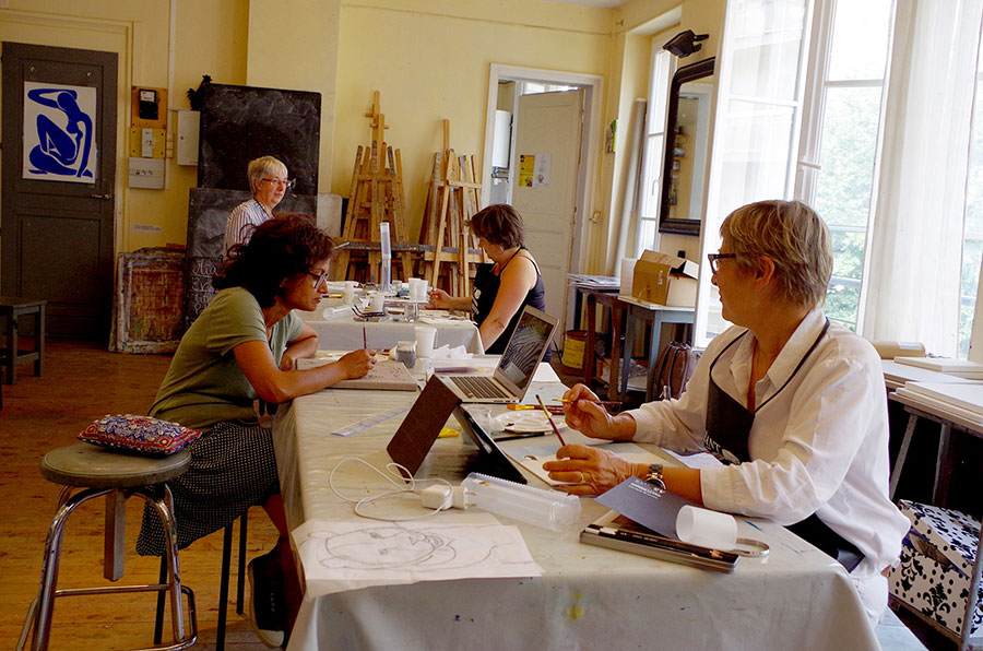 Morgane can also provide the material needed for an all-inclusive workshop (pencils, brushes, models, supports, accessories to the exclusion of easels that participants must bring with them if they wish to use them).